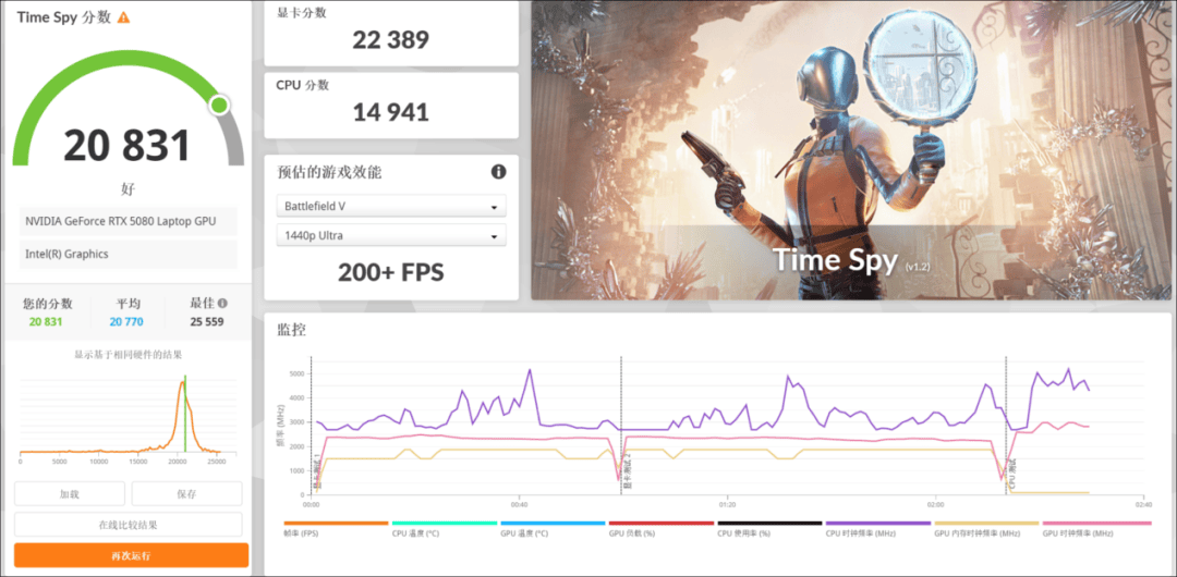 RTX 5080的TS测试场景,显卡分数能跑到22000以上,2.5K分辨率下是完全没有压力的