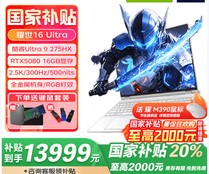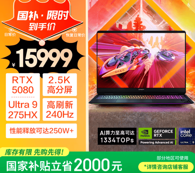点评:另外有一些小伙伴可能会说,RTX 5080游戏本毕竟不便宜,他还是想考虑国际品牌。那么惠普暗影精灵MAX算是其中价格相对比较实惠的一个选择,其日常价格17999元,国补到手价格是15999元,相比御三家中其他两家,基本要便宜4000元左右,这个差价幅度还是挺大的,因此也有不少小伙伴关注。该机搭载的是Ultra 9 275HX+RTX 5080核心硬件组合,整机性能释放同样是完全不用担心,输出功率可到250W,也是妥妥的一员悍将。屏幕则是16英寸的2.5K 240Hz屏,支持双显三模(其实配置到了这个地步,各款RTX 5080游戏本的基础硬件配置都不存在短板)。机身造型偏向沉稳低调,想炫酷一些,也有底盘灯带。接口豪华,双雷电4,搭配三个10Gbps的USB-A,扩展性非常给力。电池容量83Wh中规中矩。总体来说,对于想考虑国际品牌价格实惠一些的RTX 5080游戏本的小伙伴而言,惠普暗影精灵MAX价格的确不算贵。
