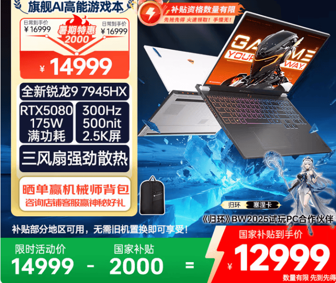 锐龙9 7945HX/RTX 5080/32GB/1TB/2.5K 300Hz